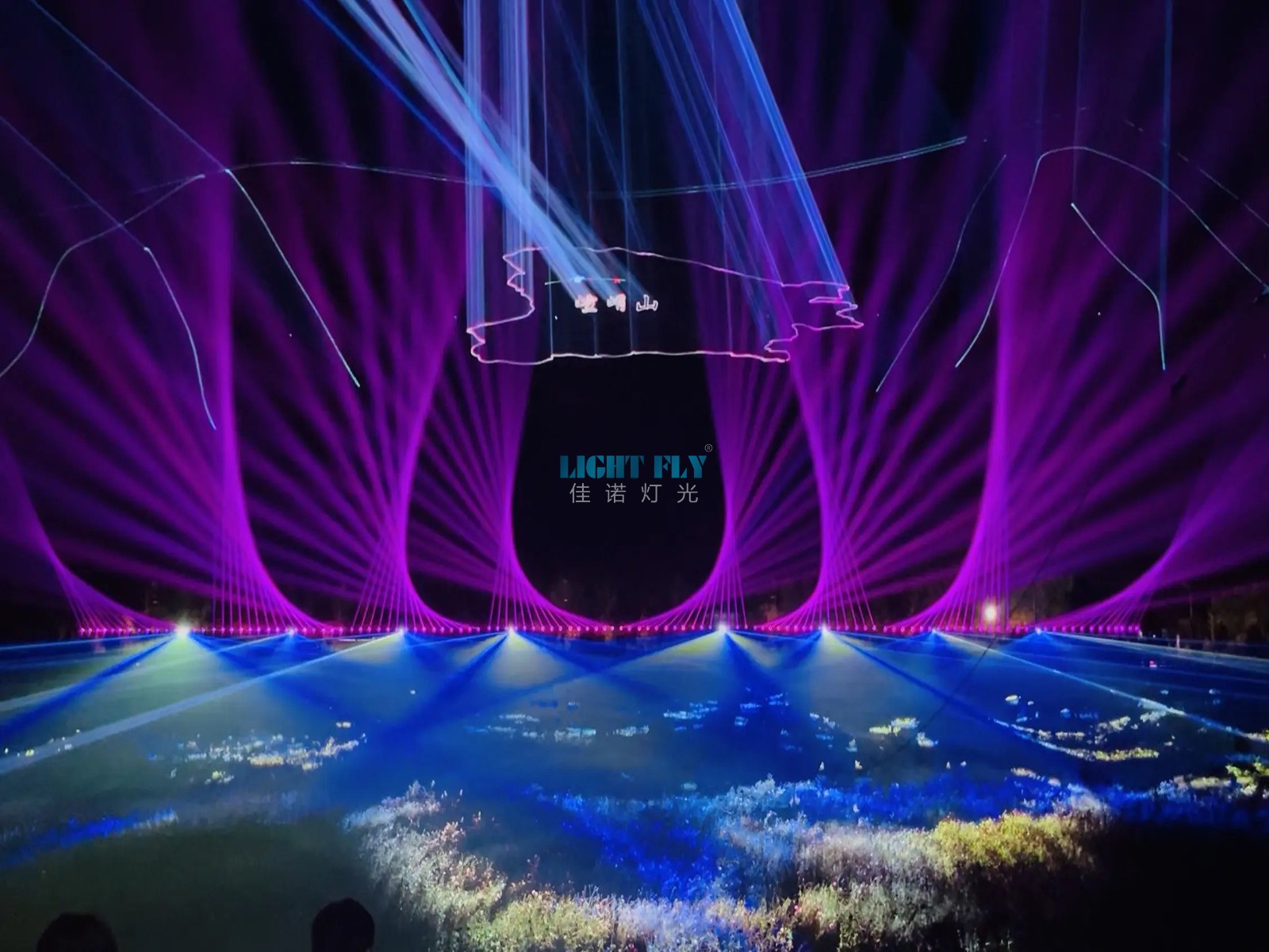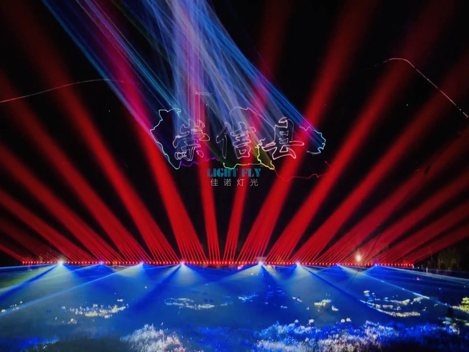 為了吸引全國各地的游客,打造了一場夢幻山體雕刻激光燈秀,佳諾燈光LIGHT FLY設(shè)計了8臺100W全彩激光燈與180臺480W防水光束燈放置于山體角落,實現(xiàn)了激光光束與光束燈七彩光束效果,山體對面設(shè)計了8臺雕刻激光燈,通過進口BEYOND雕刻激光軟件實現(xiàn)了任意動畫與文字的相結(jié),實現(xiàn)了精彩絕倫的動畫激光效果也打造了特色文化與產(chǎn)品的宣傳廣告效果,得到了領(lǐng)導(dǎo)與游客們一直贊賞.